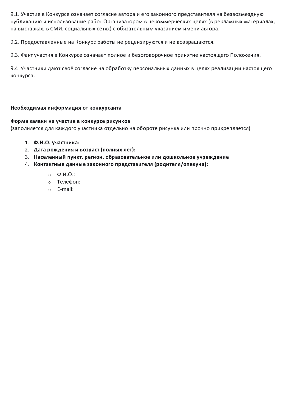 - Важное требование: каждую работу необходимо подписать с обратной стороны печатными буквами или снабдить прочно прикрепленной этикеткой со следующей информацией: